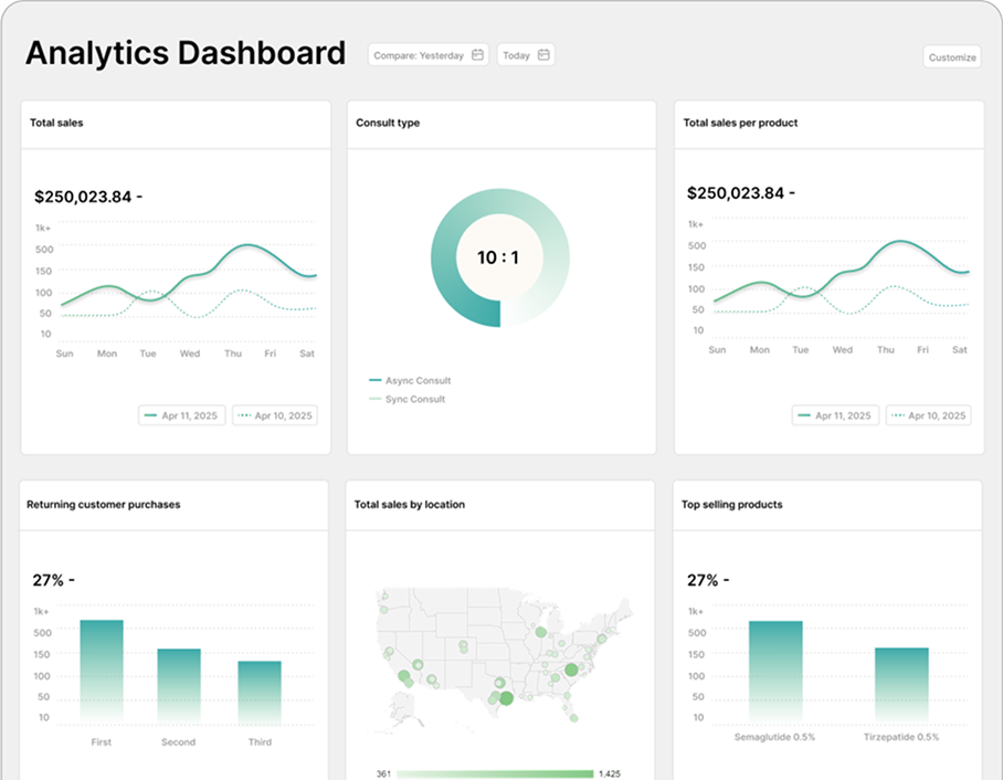 Consolidates all digital health services intake, care, labs, and pharmacy into a single, easy-to-manage system.